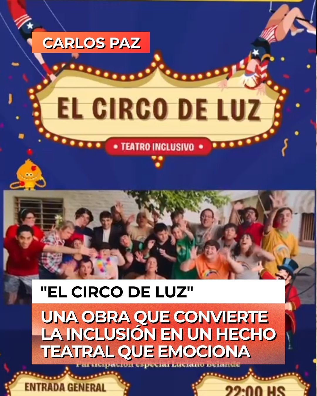 El Circo de Luz llega a Carlos Paz como una comedia familiar que ilumina la temporada y confirma que la inclusión también puede ser un fenómeno artístico y laboral. El espectáculo es presentado por MAKTUB, Elenco de Teatro Inclusivo de Villa Carlos Paz, un grupo que trabaja durante todo el año para subir a escena en verano.