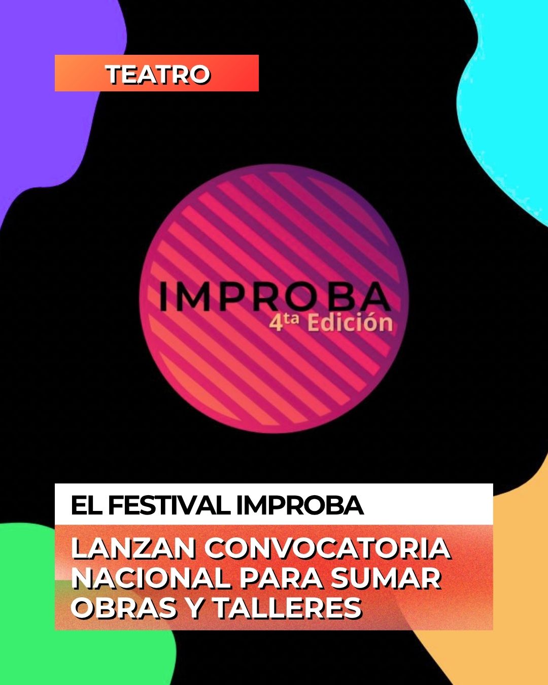 El Festival ImproBA mantendrá abierta la inscripción hasta el 5 de abril para quienes deseen presentar obras, espectáculos o talleres. La convocatoria está dirigida a artistas de distintas provincias y también a propuestas internacionales interesadas en participar de un festival que promueve “el intercambio, la diversidad de expresiones y el enriquecimiento mutuo”.