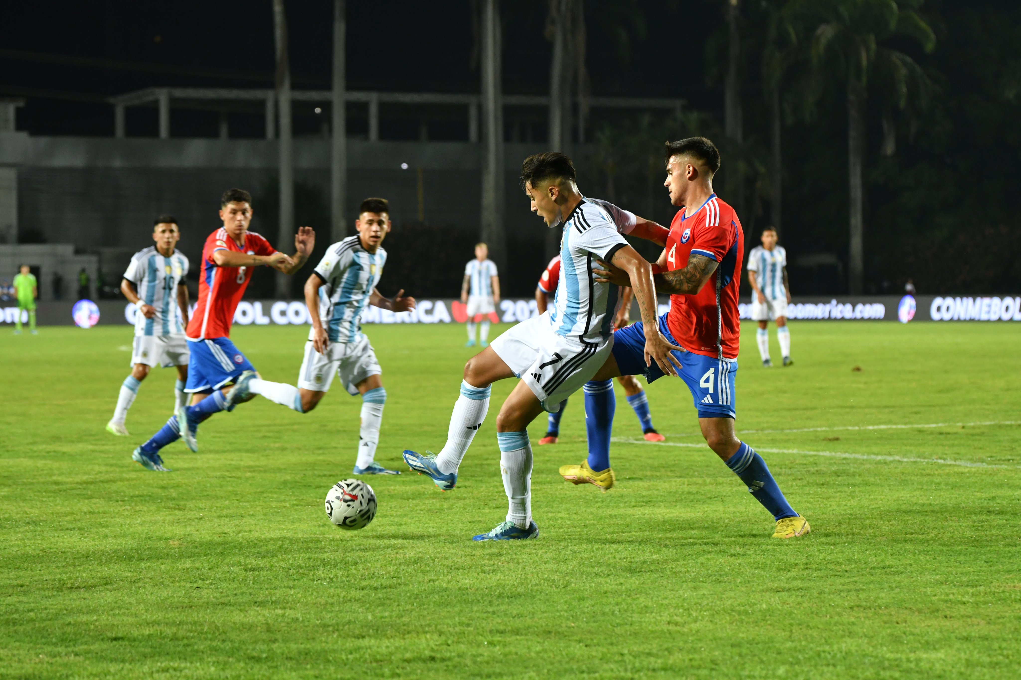 La Albiceleste se impuso a La Roja por los goles de Thiago Almada por duplicado, Santiago Castro, Aaron Quirós y Luciano Gondou.