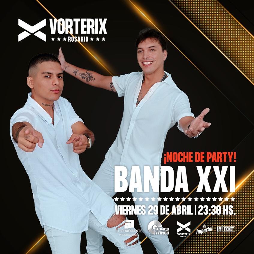 Fundada el 10 de noviembre de 1999; oriunda de Río Cuarto, provincia de Córdoba; y producida por Miguel “Conejito” Alejandro, Banda XXI es reconocida por sus versiones de cuarteto teñido con colores de merengue y géneros afines. Con más de veinte años de permanencia y gran trayectoria, ha logrado posicionarse como una banda tradicional de la música cordobesa a lo largo y ancho del país.