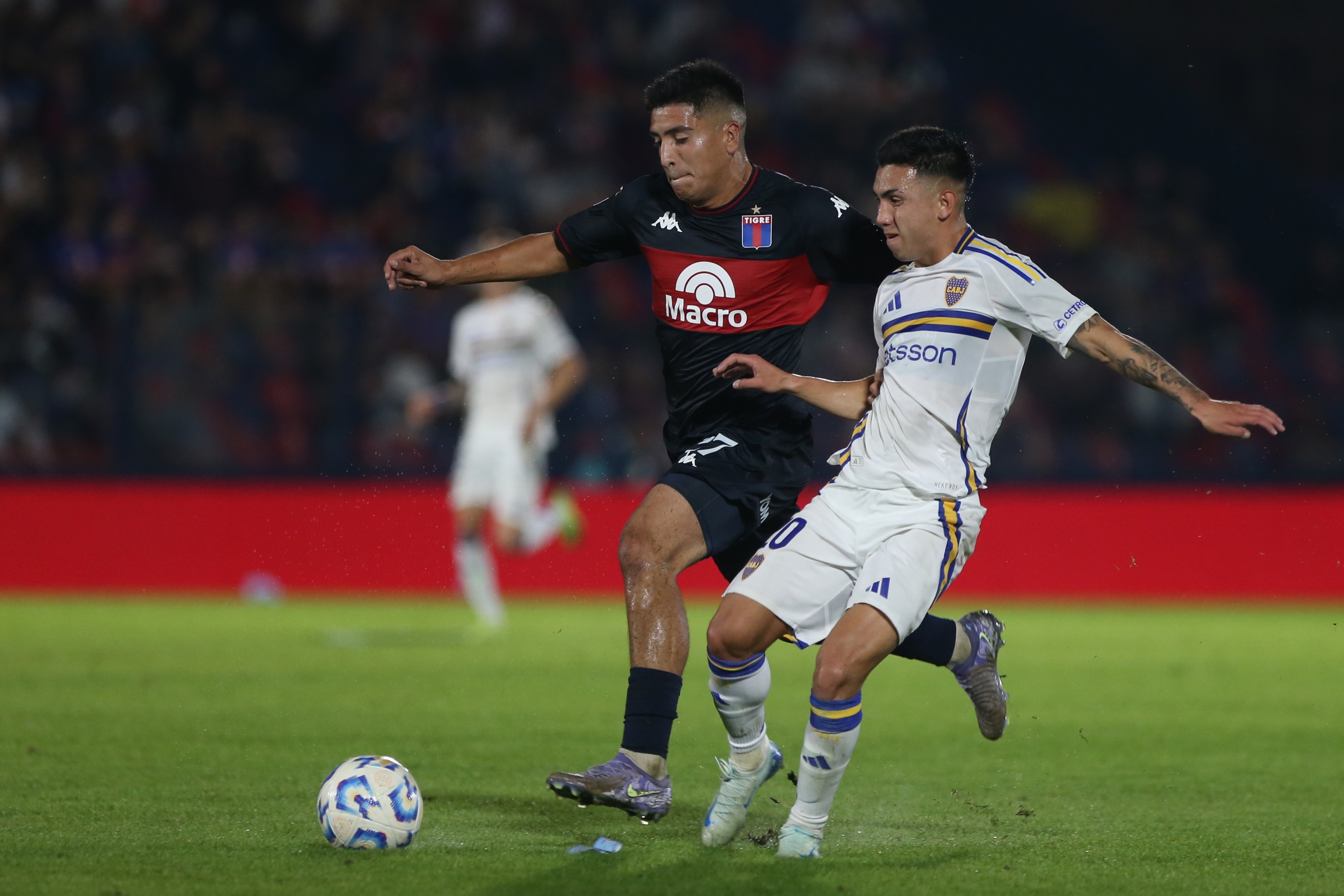 Tigre comenzó el encuentro mejor que Boca y tuvo de inicio una clara con un remate de Héctor Fértoli que pasó cerca del palo, pero la visita lo emparejó con el paso de los minutos y abrió el marcador con un golazo de Kevin Zenón.