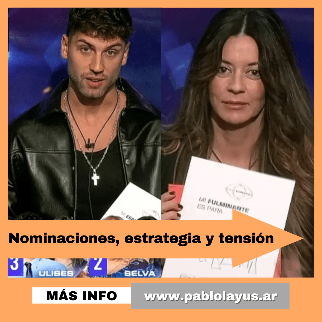 Tato fue protagonista de la nominación espontánea, una jugada que sorprendió a más de uno. El participante decidió darle 3 votos a Ulises y 2 a Selva, movida que dejó en evidencia sus prioridades y posibles alianzas dentro de la casa.