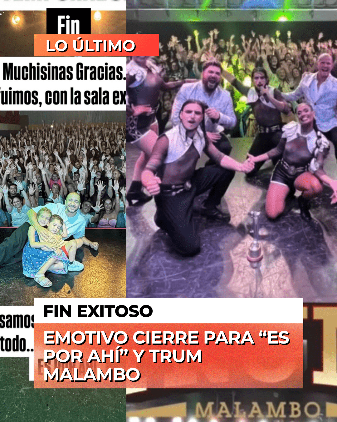 “Temporadón. Fin. Muchísimas gracias… así nos fuimos, con la sala explotada”, compartió el artista junto a una postal desde el escenario, donde se lo vio acompañado y abrazado en una escena cargada de emoción.