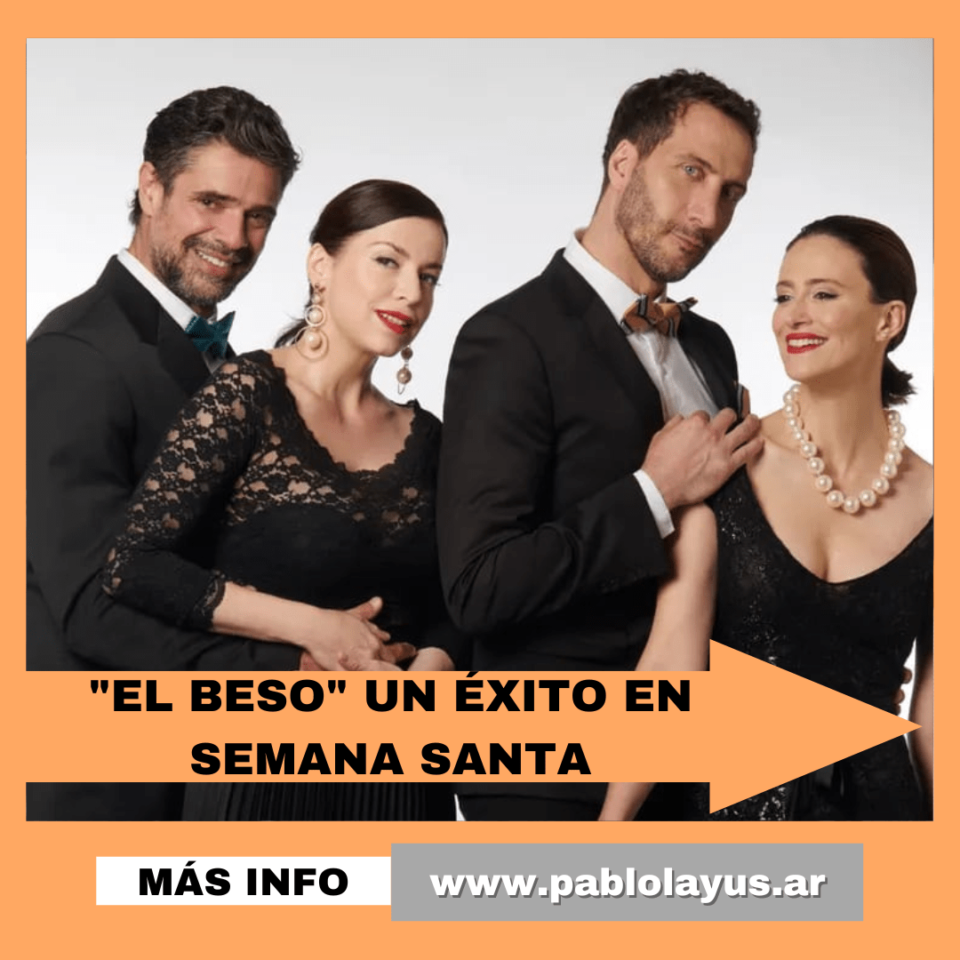 «El Beso», una obra en cuatro actos que cuenta la historia de dos parejas que a través de Un Beso, desencadena cambios de vida y la pregunta clave: ¿qué consecuencias puede lograr un Beso postergado por años?