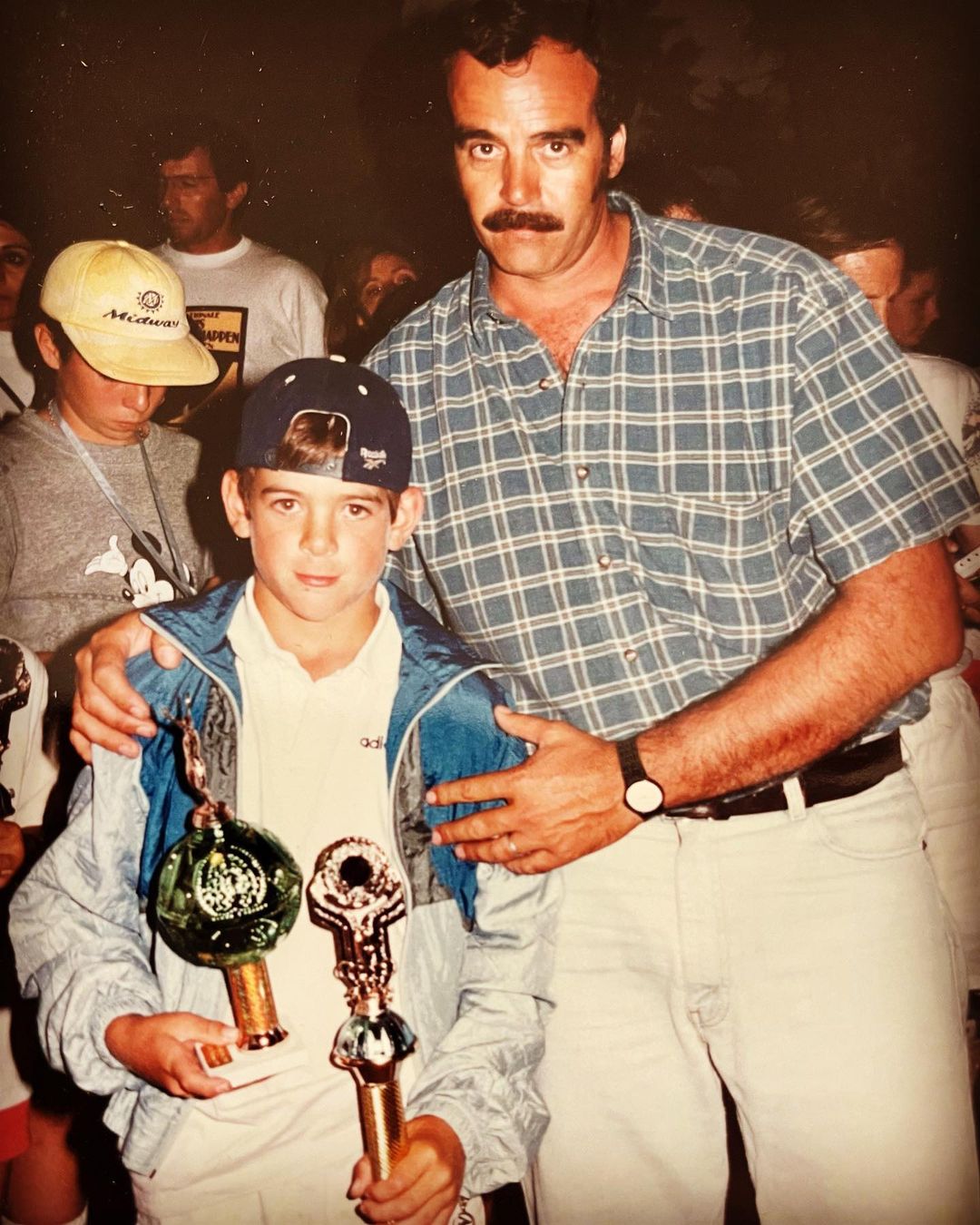 Su mensaje estuvo acompañado de una imagen de su infancia en la que se lo ve con varios trofeos junto a su papá.