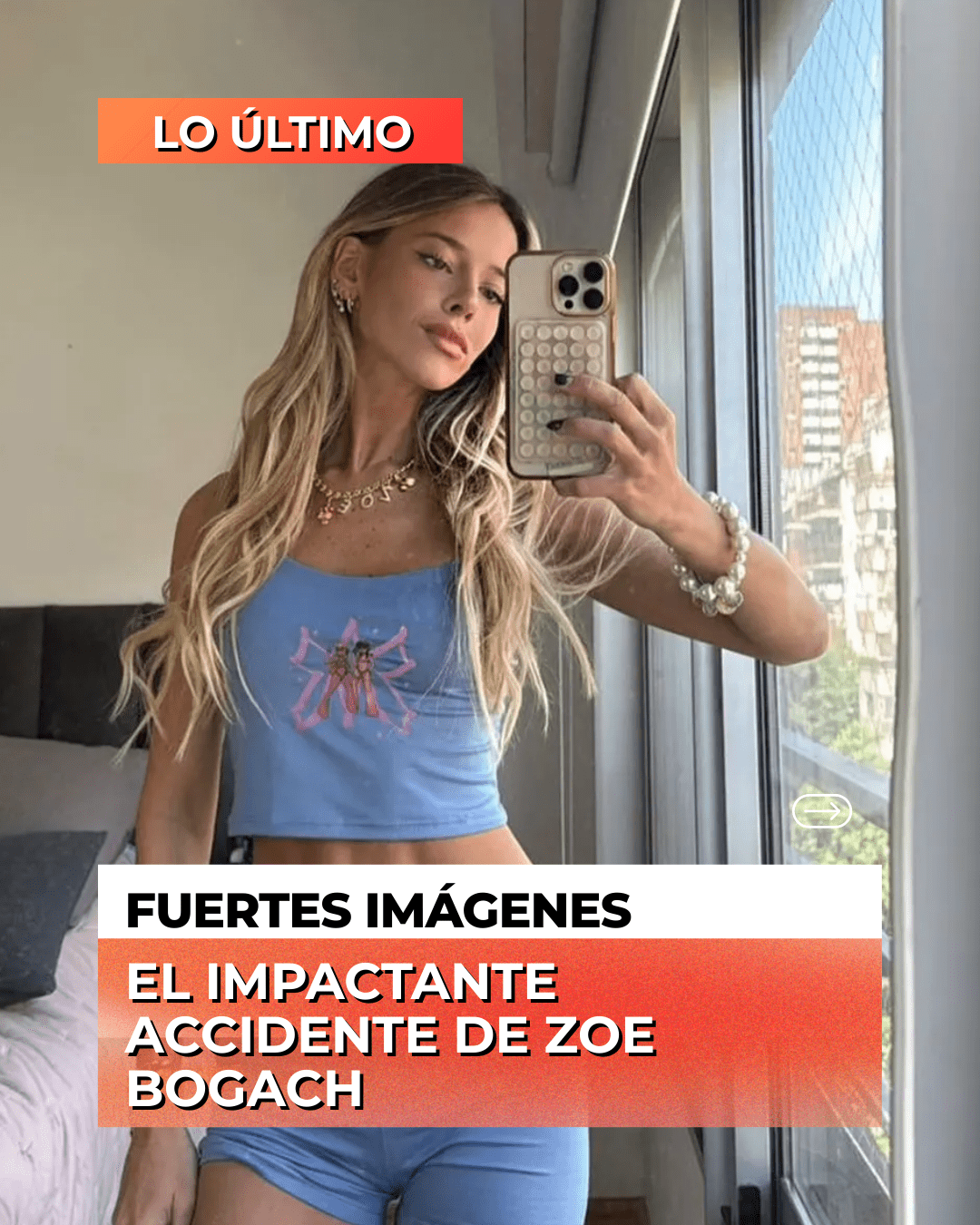 Horas después del accidente, Zoe regresó a Instagram demostrando que el susto no le arruinó el domingo. Posó junto al ventanal de su habitación con un conjunto deportivo de top y short de lycra, el pelo suelto y un look fresco, dejando en claro que estaba mejor.