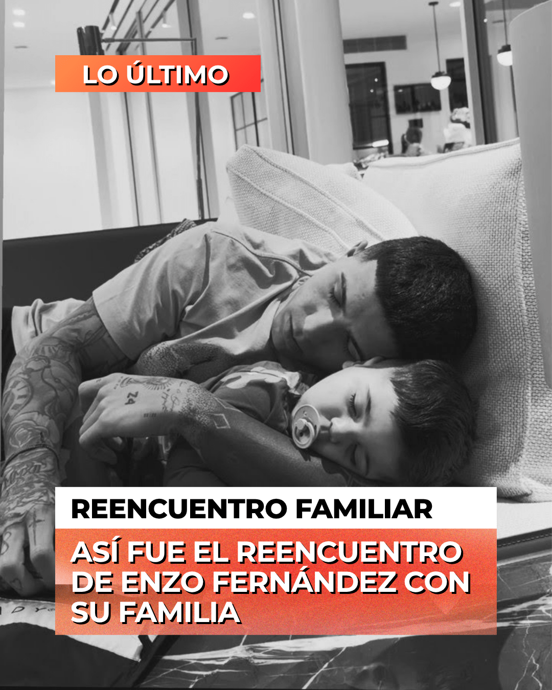En otra foto en blanco y negro, se ve a Enzo y al pequeño Benjamín durmiendo una siesta abrazados.