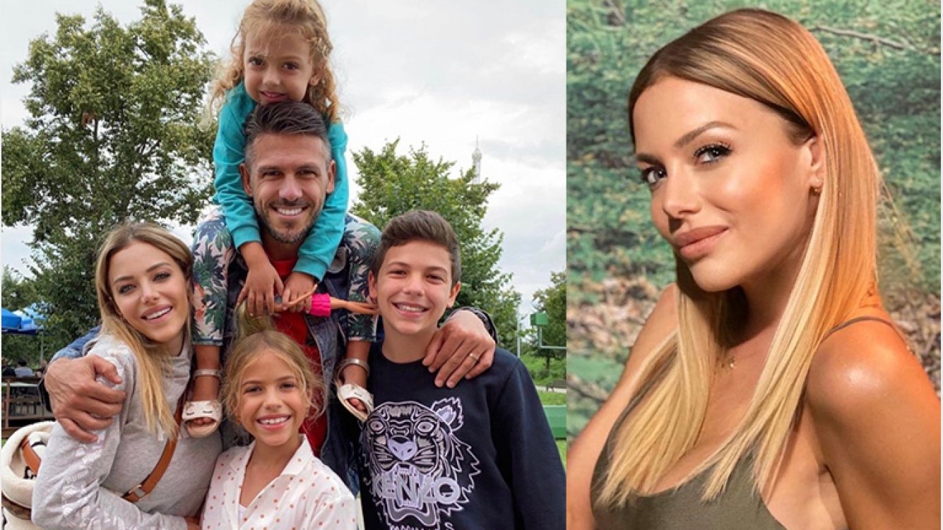 En la imagen, en blanco y negro, se la ve junto a Martín Demichelis y los hijos de ambos: Bastian, Lola y Emma.