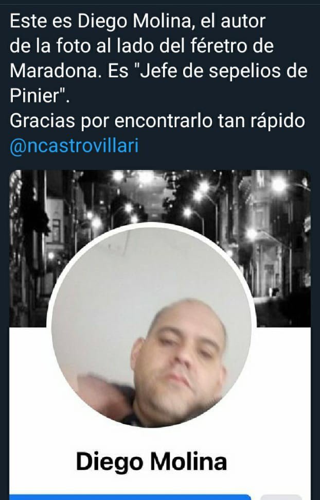 Se sacó una foto al lado del féretro abierto donde se lo ve al Diez y la difundió. La foto se viralizó y Molina fue echado de su trabajo.