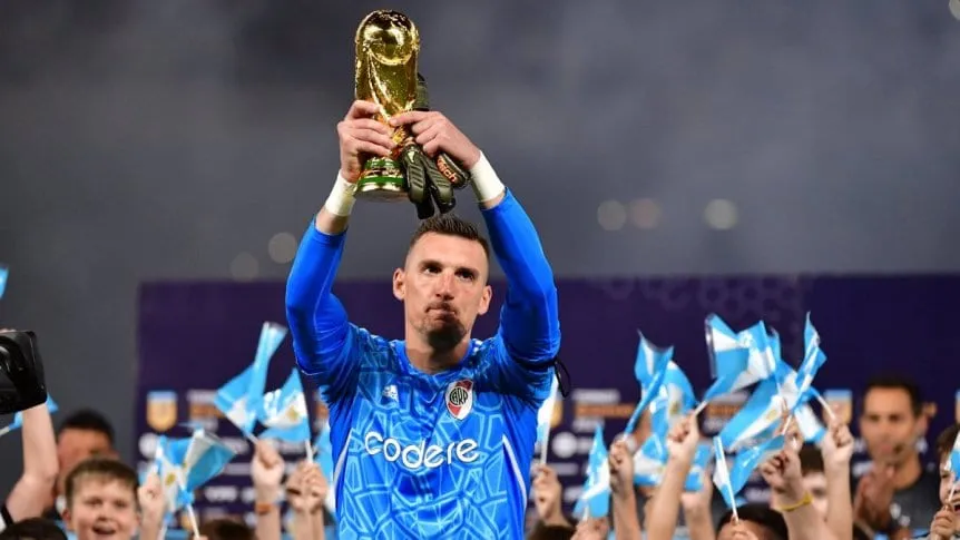Pero eso no fue todo para el experimentado guardián: además hubo una ceremonia con niños flameando banderas albicelestes y le brindaron una réplica del máximo trofeo dorado para que pueda levantarlo de cara a las tribunas del Único Madre de Ciudades.