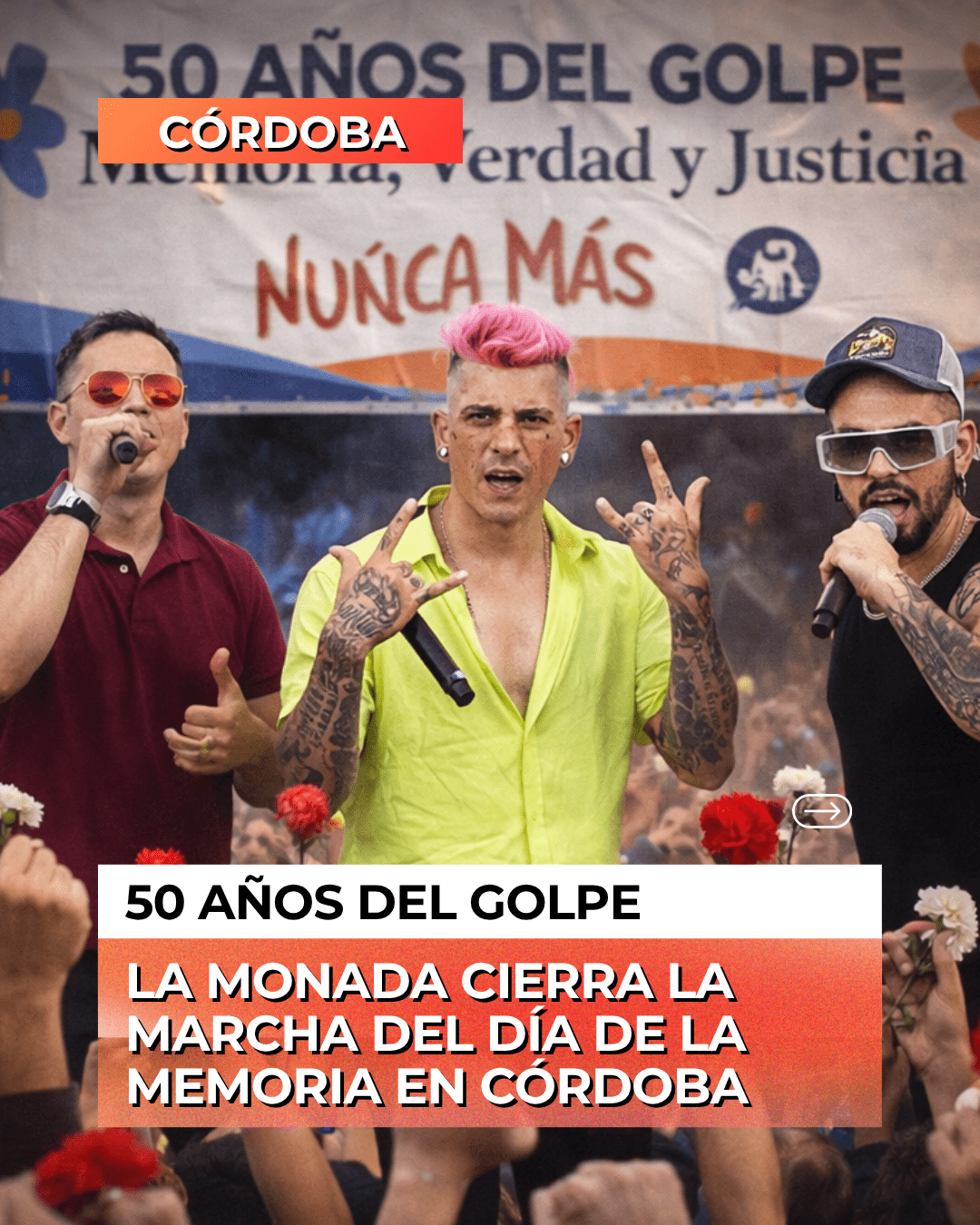 A medio siglo del Golpe de Estado en Argentina de 1976, la memoria colectiva vuelve a ocupar las calles en todo el país. En Córdoba, una de las movilizaciones más convocantes del interior suma este año una participación inédita: el cuarteto se hace presente en la marcha del 24 de marzo de la mano de la banda Monada.