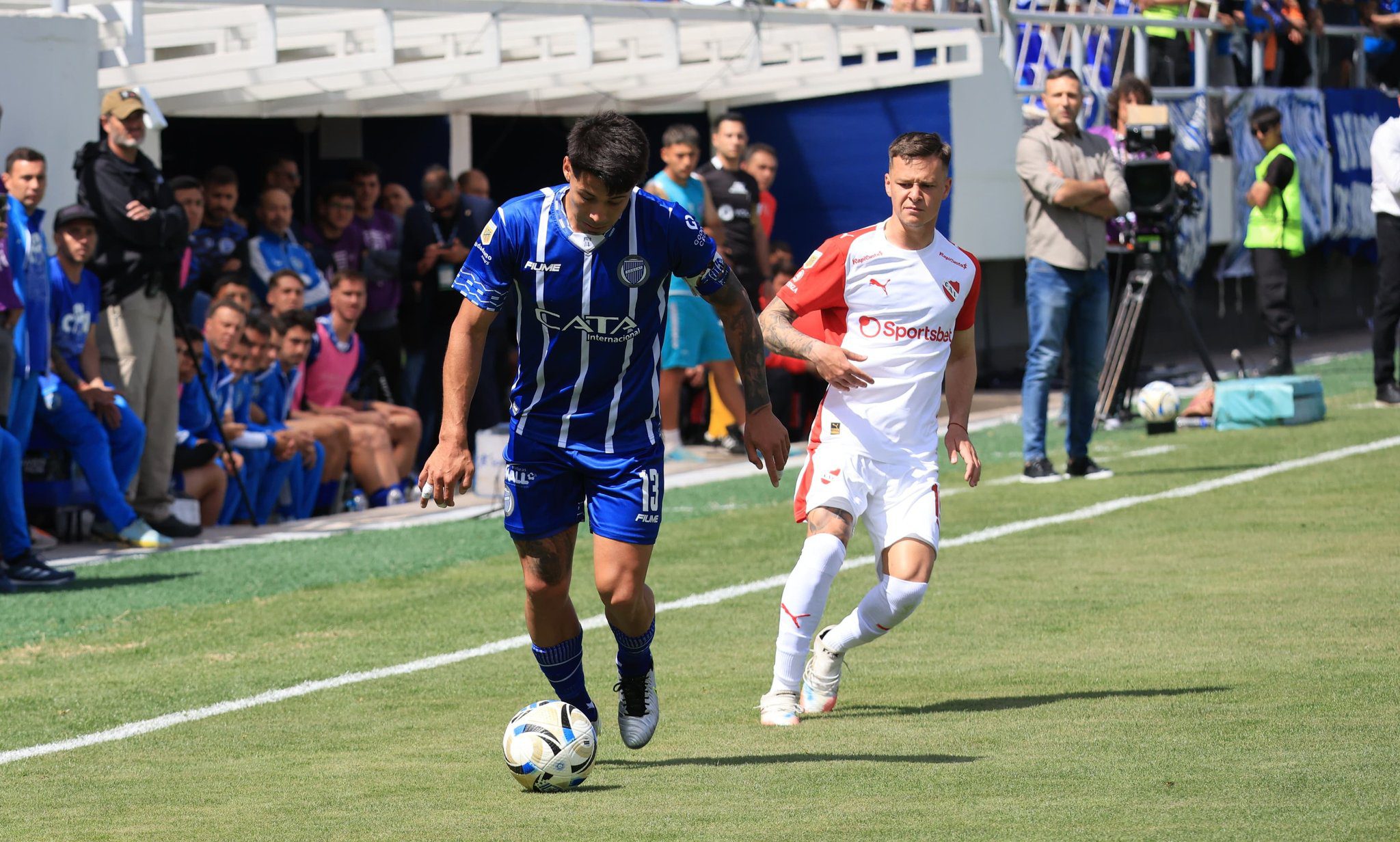 A los 4’ del primer tiempo ocurrió la primera polémica del partido que desató el enojo en el banco de suplentes del elenco mendocino. Agustín Auzmendi y Franco Paredes fueron a disputar una pelota dentro del área del Rojo, y el delantero del “Tomba” se arrojó al suelo al sentir el impacto del defensor central rival. Sin embargo, el árbitro Andrés Gariano no observó infracción y no sancionó penal.
