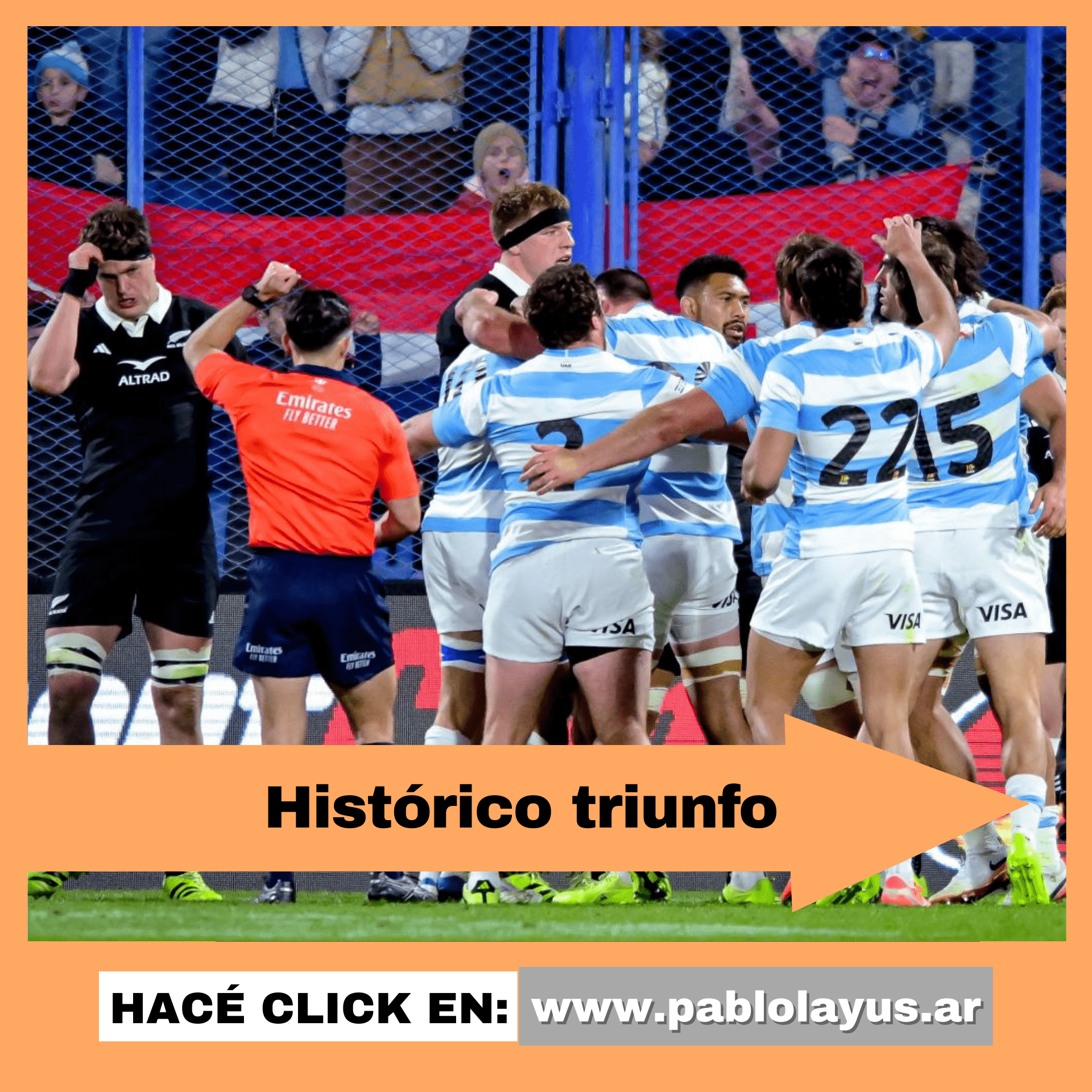 El equipo argentino logro un hito. Es la cuarta vez en la historia que le gana al poderoso equipo negro, pero es la primera vez que lo logra en casa. Una celebración enorme.