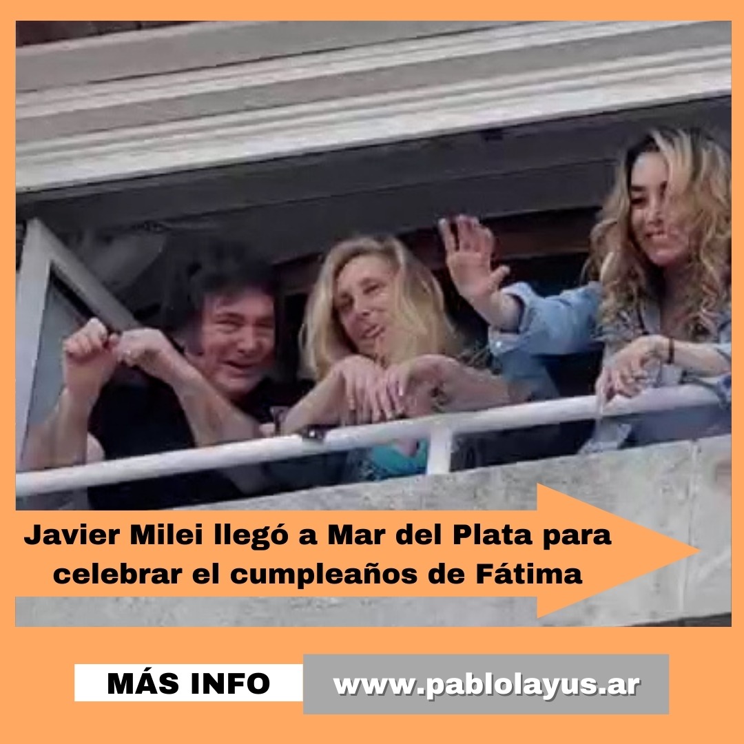 Según se informó, Javier Milei arribó a la ciudad a las 15.30 horas. Desde allí se trasladó al hotel Provincial donde se encontró con Fátima. Y desde una ventana del mítico edificio marplatense, saludó a la gente que se reunió en la puerta. Mirá las imágenes acá: