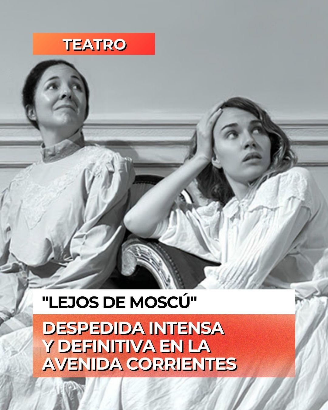 «Lejos de Moscú» se despide este domingo 30 de noviembre a las 19.30 en la Sala Solidaridad del Centro Cultural de la Cooperación, sobre la Avenida Corrientes, con una función que podría convertirse en un evento teatral. La obra “Lejos de Moscú” cierra su recorrido porteño luego de una temporada marcada por actuaciones sensibles y un clima escénico cargado de introspección. Las localidades se consiguen en boletería y mediante plataformas de venta online habilitadas por la sala.