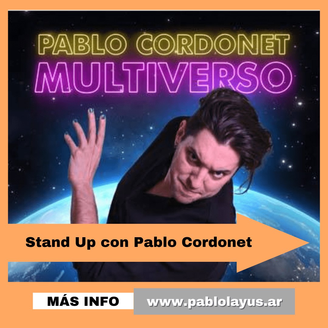 Con infinidad de espectáculos en su trayectoria, Pablo Cordonet es comediante, actor, director, músico y uno de los artistas con mayor proyección de los últimos tiempos. En este espectáculo despliega todo su talento e histrionismo para recorrer distintos tópicos. El barrio, los amigos, los hijos, la convivencia, las nuevas generaciones y un sinfín de anécdotas y vivencias narradas como sólo él sabe hacerlo. Temáticas con las cuales el público se siente totalmente identificado y las carcajadas están aseguradas.