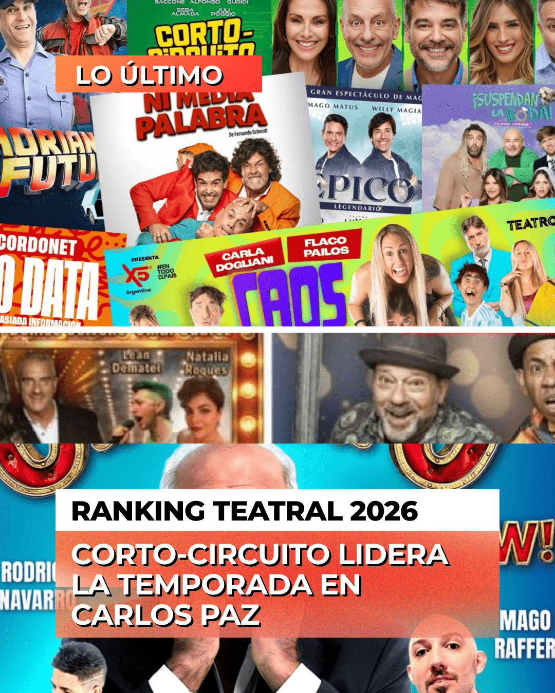 Ranking teatral 2026: Corto-Circuito lidera la temporada en Carlos Paz