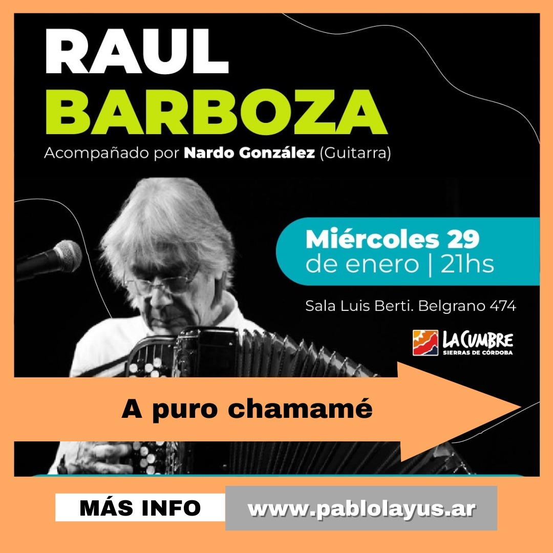 Raúl Barboza se presentará el miércoles 29 de enero a las 21:00 en la Sala Luis Berti, ubicada en Belgrano 474. Acompañado por el guitarrista Nardo González, el icónico acordeonista ofrecerá un concierto donde el chamamé será el gran protagonista. Con una trayectoria que lo ubica entre los más grandes exponentes de la música popular argentina, Barboza promete una noche cargada de emotividad y virtuosismo.