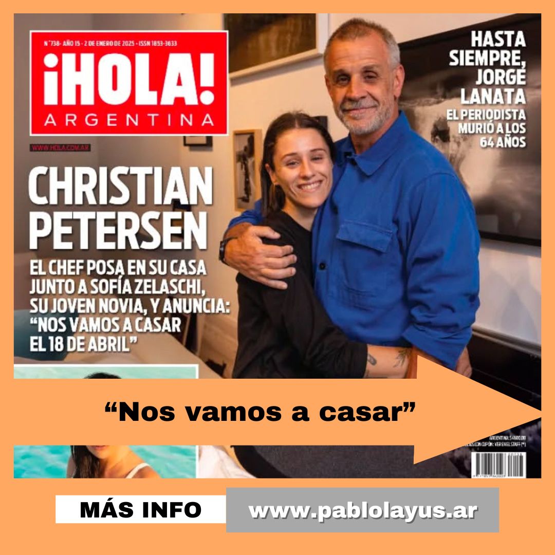 En la tapa de la Revista Hola Argentina, de esta semana, aparece el chef Christian Petersen junto a su novia Sofía Zelaschi. Juntos anunciaron: «Nos vamos a casar el 18 de abril». Además, el último adiós a Jorge Lanata. Enterate de todo acá.