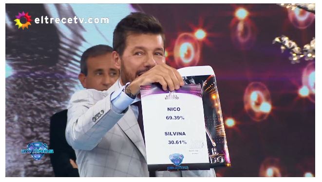 El super Bailando llegó a su fin y consagró a la pareja que fue la novedad del certamen. Nico llegó x ser el ex de Flor y terminó venciéndola. Fue por muy poco y lo logró durante el programa pero principalmente porque le dio a Showmatch excelentes previas y mucho talento. De Nico se desprende su familia entera con la abuela a la cabeza y se convirtió en una figura nueva del programa. Tuvo picos de 20 puntos y se extendió hasta las 01