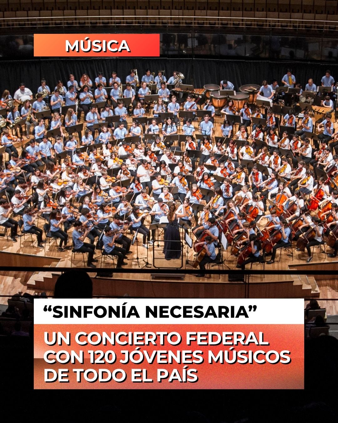 Sinfonía necesaria será el gran concierto federal que reunirá a 120 jóvenes músicos de distintas provincias argentinas. El evento se realizará el jueves 30 de octubre, a las 20 horas, en el Auditorio Nacional del Palacio Libertad, ubicado en Sarmiento 151, CABA.